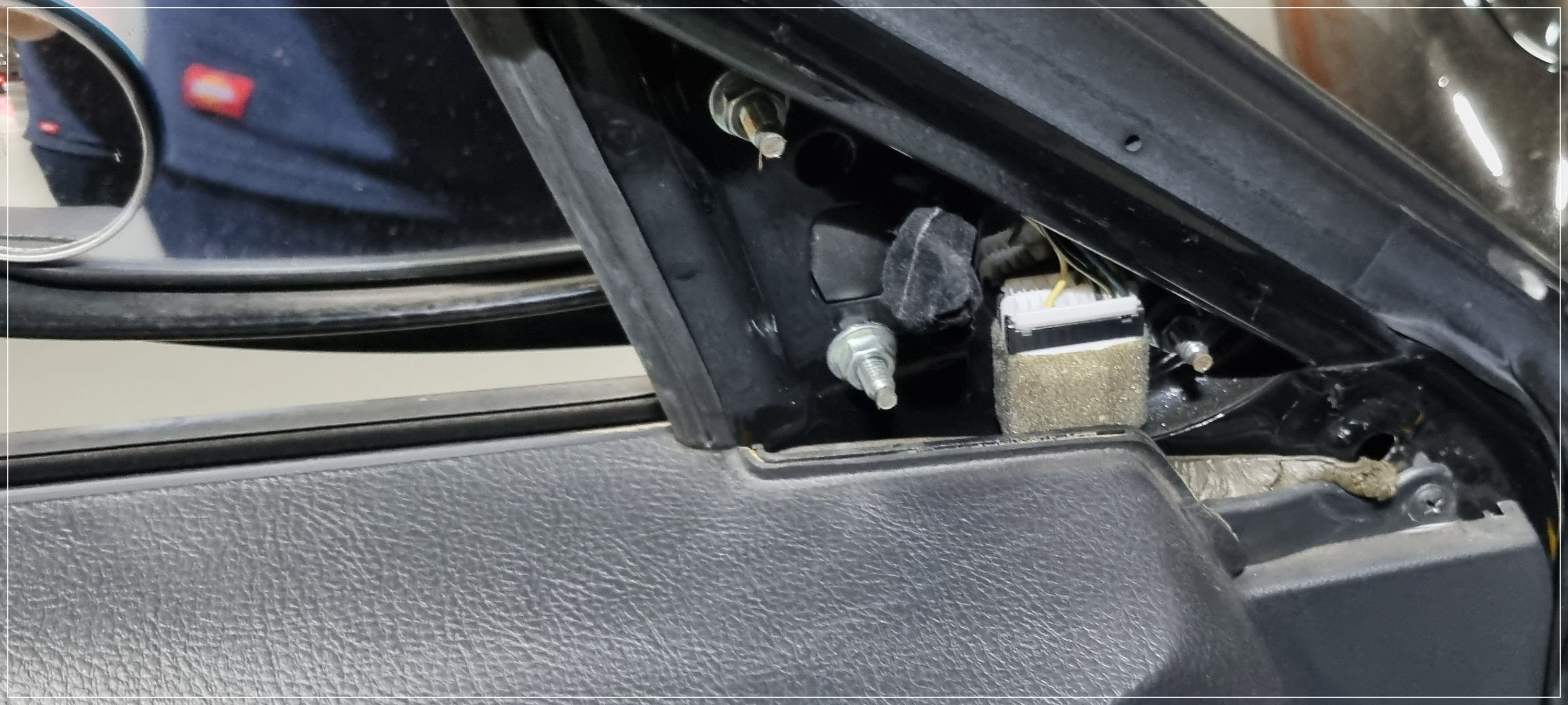 사이드미러 탈거를 위해 A 필러 쪽 내장재를 분해합니다.