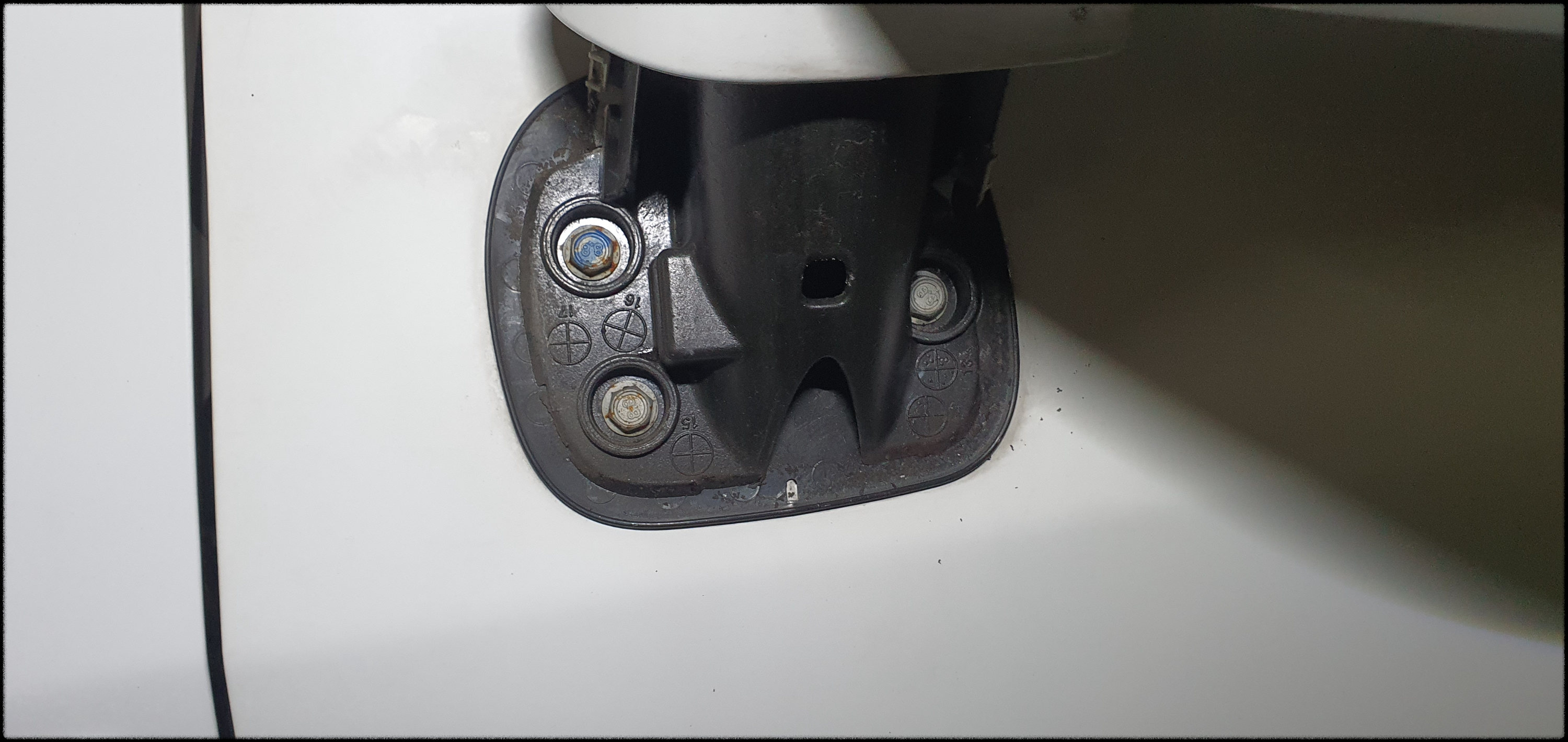 백미러 하단에 있는 커버를 열고 10mm 볼트