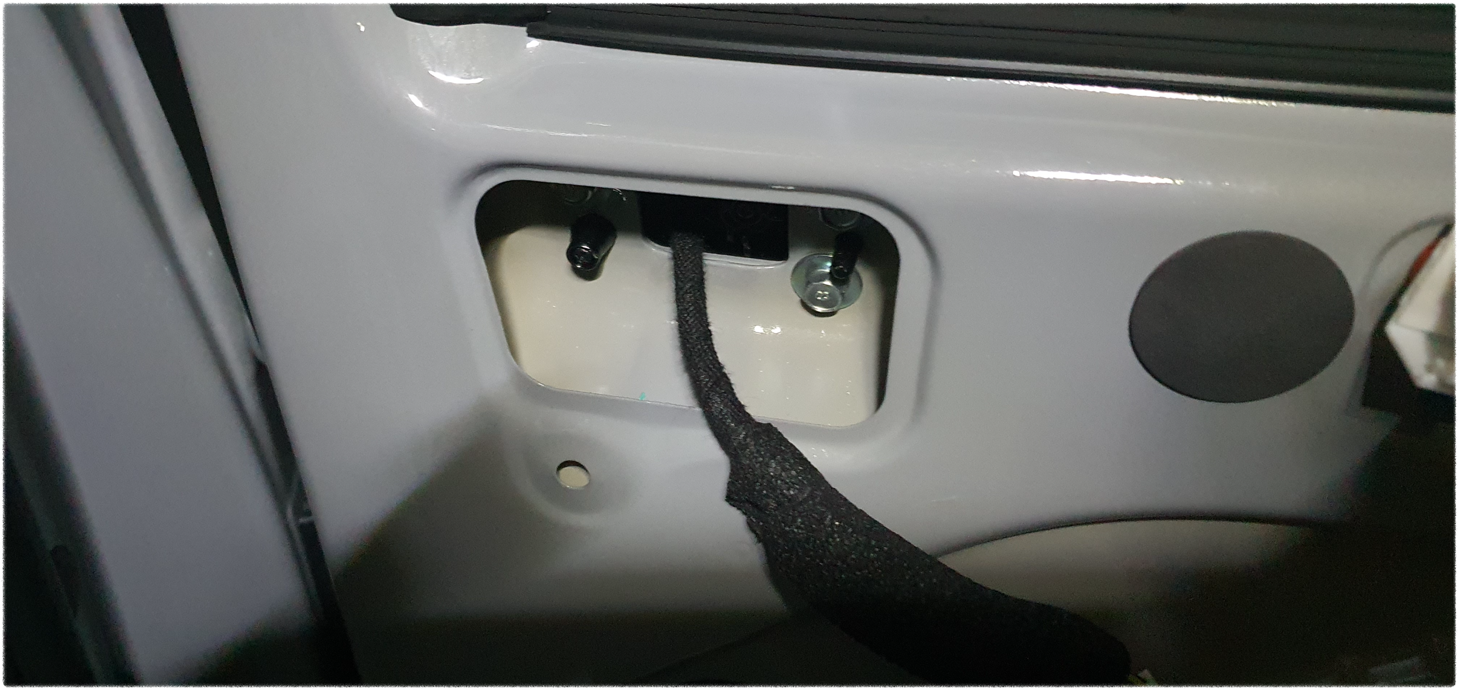 도어 손잡이에 있는 볼트를 풀고 도어 트림을