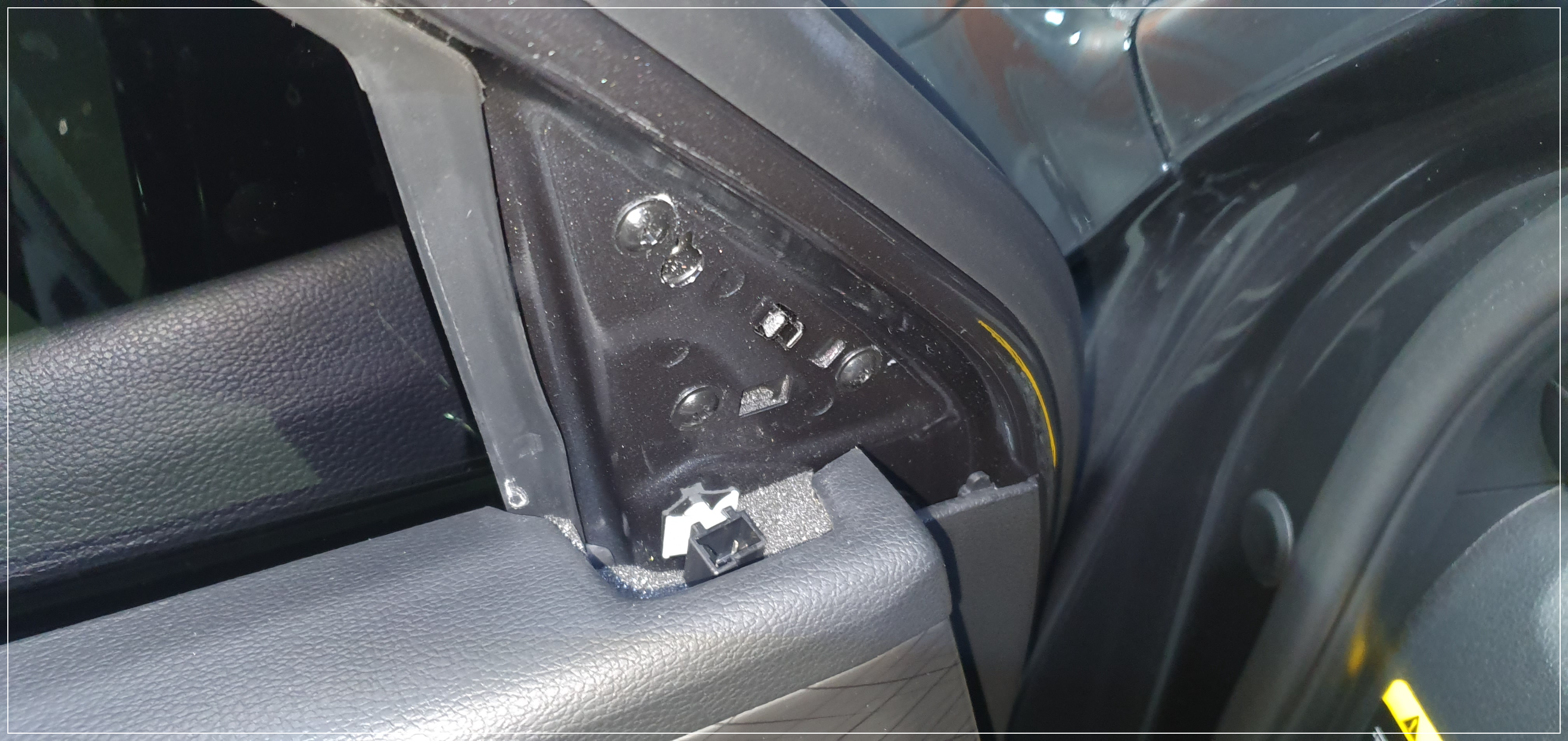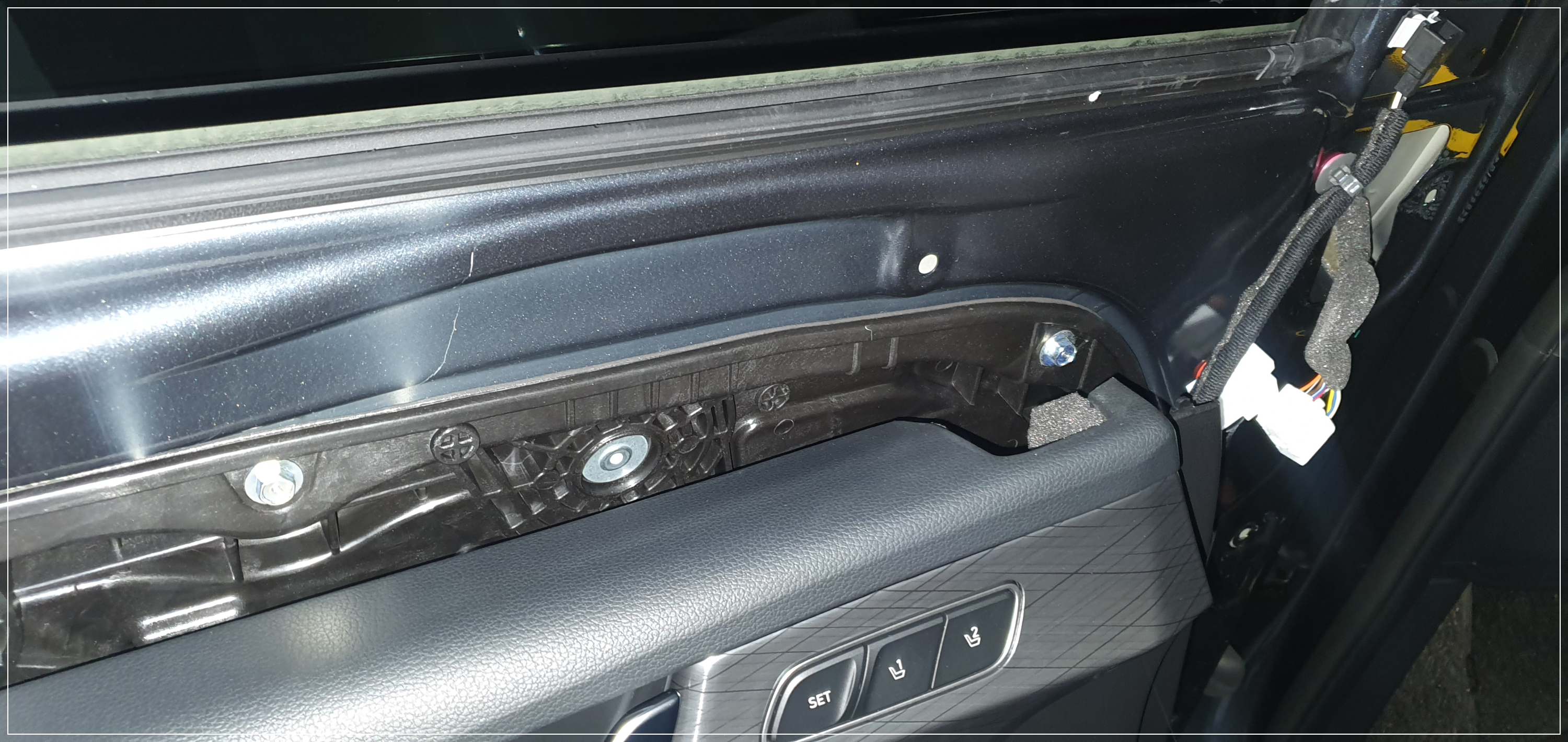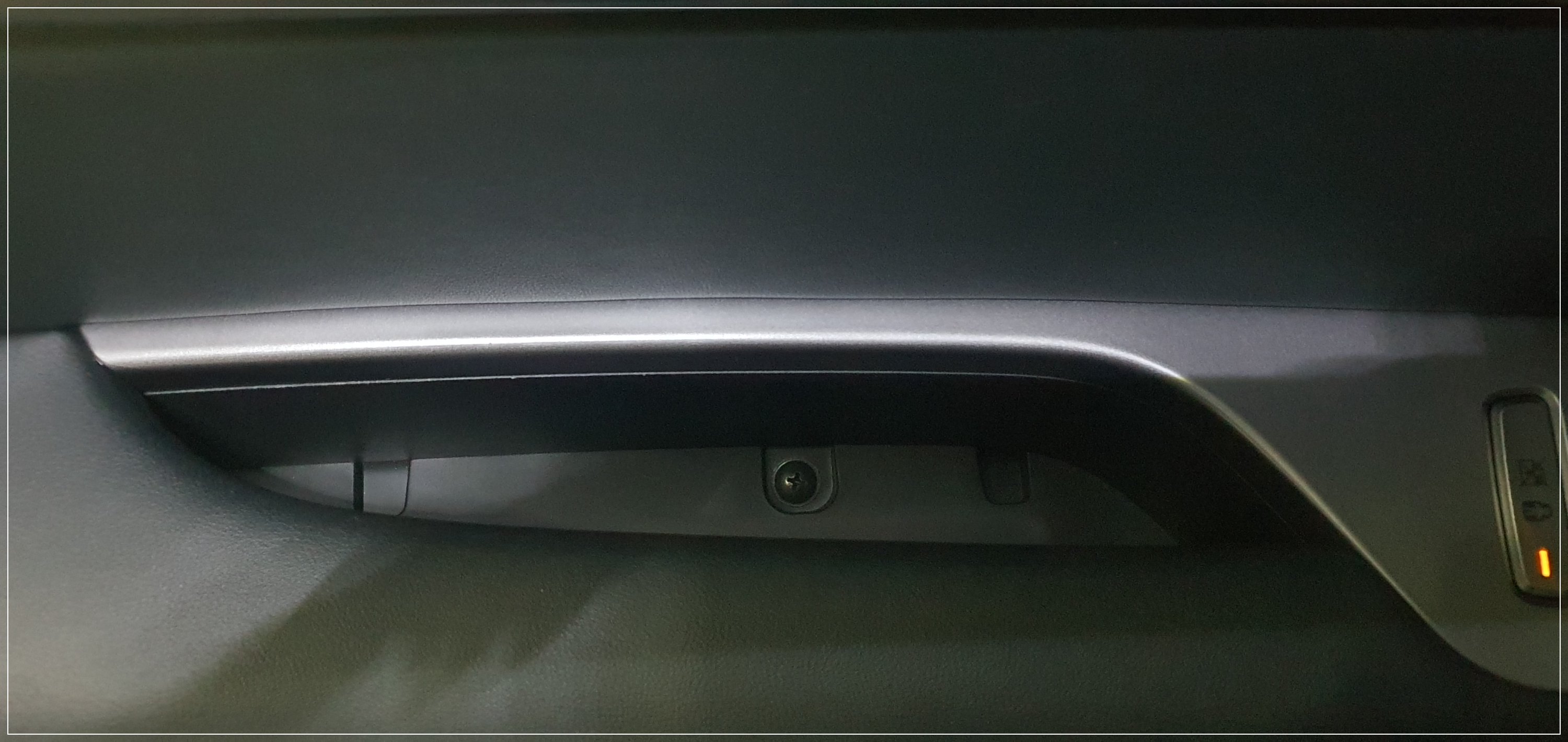 도어에 있는 삼각 내장재를 먼저 분해합니다. 손잡이에 볼트를 풀고 도어 트림을 분리합니다.