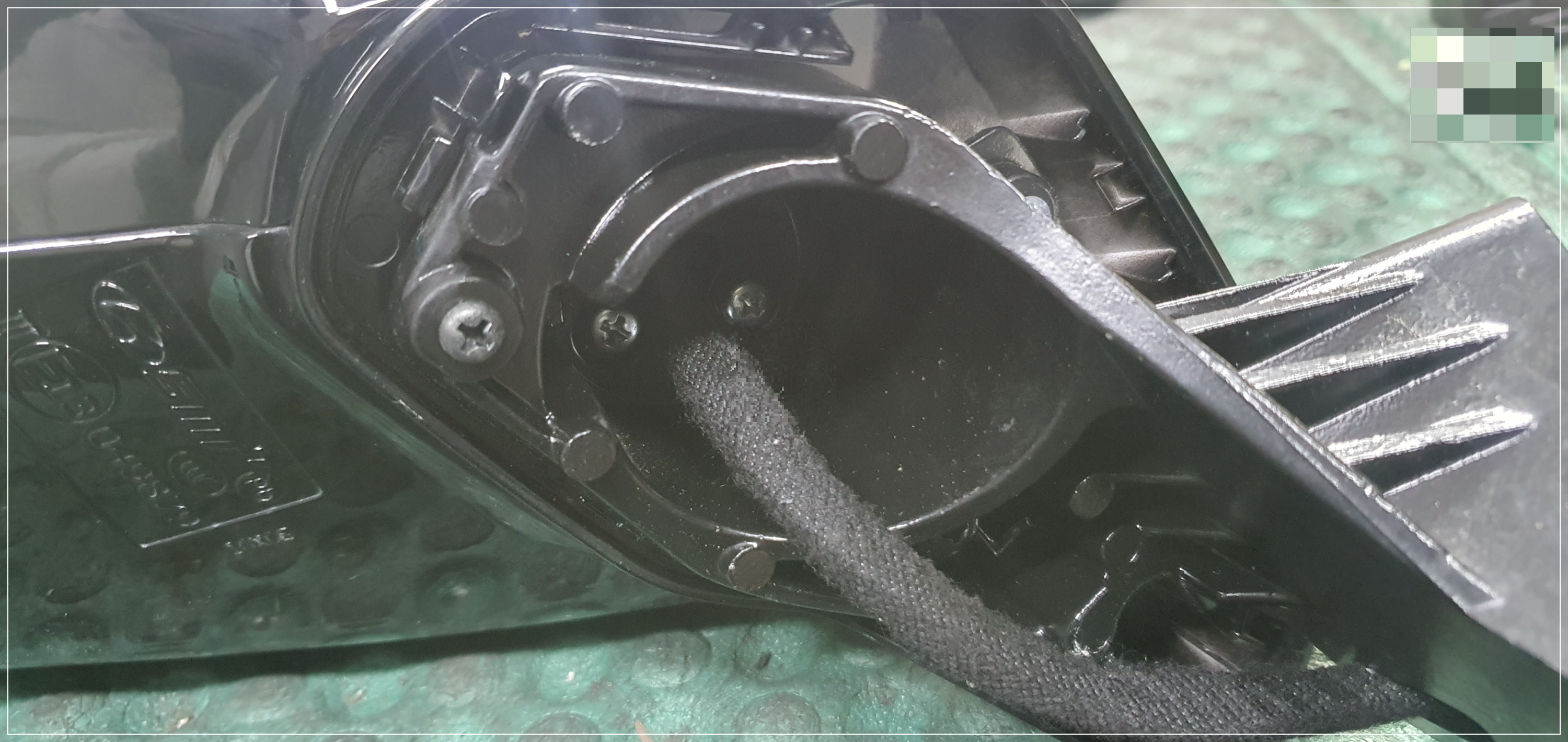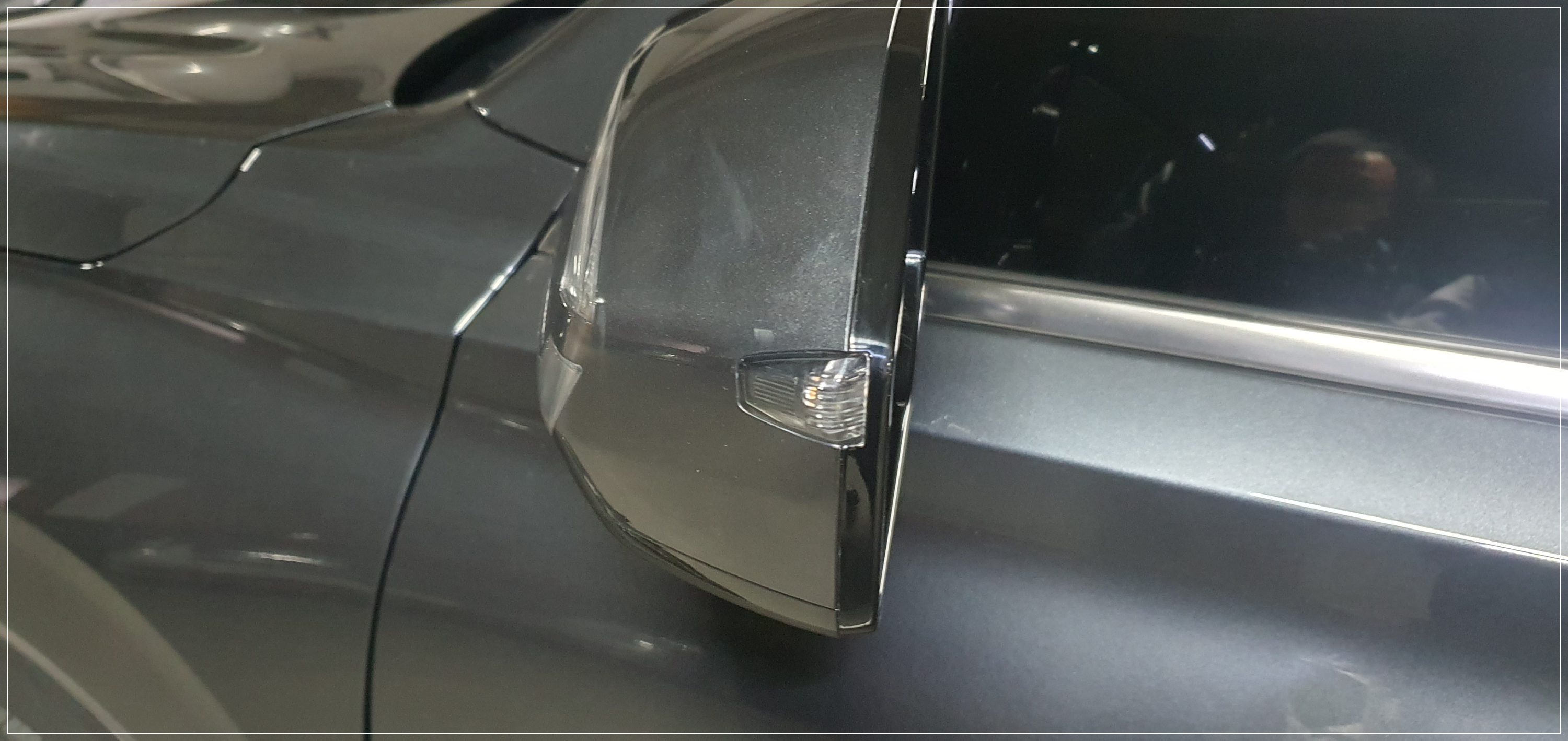 차폭이 크다 보니 주차장 기둥에 사이드미러가 파손이 많이 생기고 있습니다. 그런데 부품이 따로 공급이 되지 않기 때문에 새 제품으로 교환을 해야 합니다. 다른 쪽은 다 멀쩡한데 교환하기가 고민됩니다. 가격도 만만치 않고... 사이드미러 전문 수리점 케이제이모터스에서 해결해 드리겠습니다. 검은색 테두리 부분만 깨져서 부분 수리 진행하겠습니다.